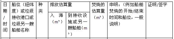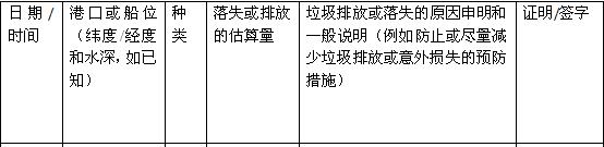 (一)《垃圾記錄簿》不論是船舶正式航海日志的一部分,還是其他形式,均應(yīng)與修正案附錄II格式相同。新版《垃圾記錄簿》電子版可在中國(guó)海事局網(wǎng)站下載。
