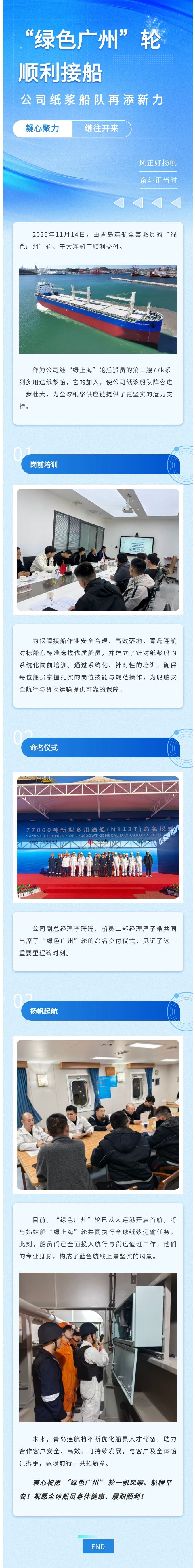 “綠色廣州”輪順利接船,公司紙漿船隊再添新力